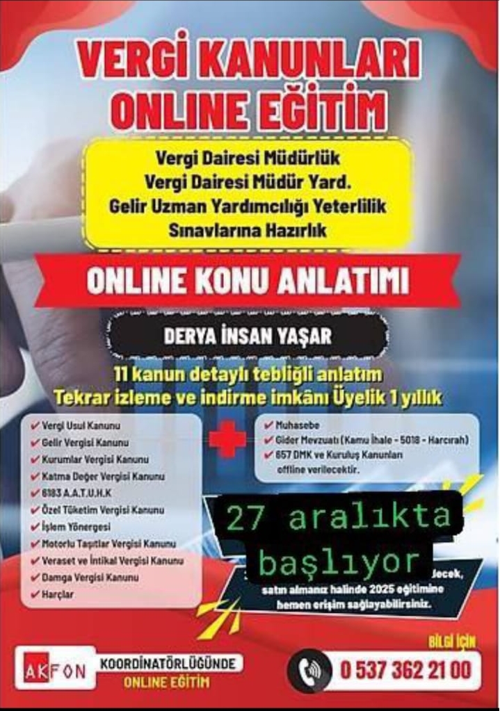 Tüm Vergi Kanunları online anlatım canlı olarak zoomdan verilecektir.